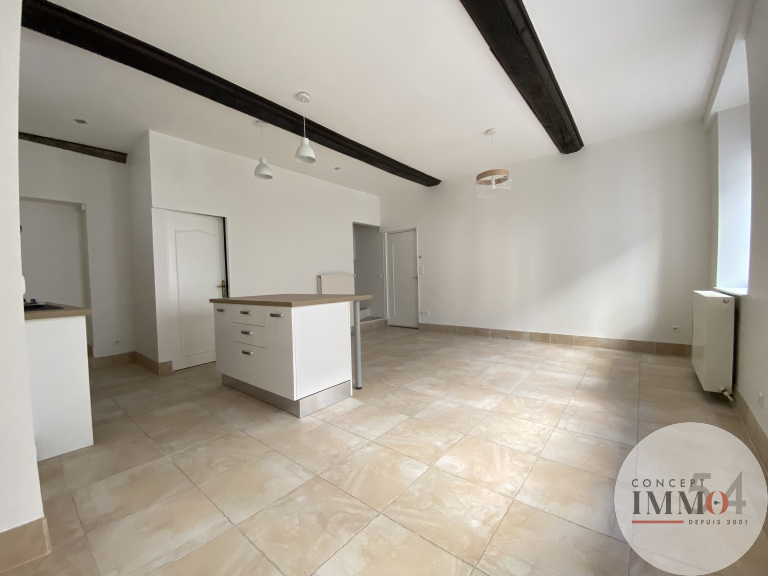 Appartement duplex T4 situé en RDC de 70m² comprenant : cuisine équipée (plaque de cuisson, hotte et four) ouverte sur séjour et un WC. A l'étage : un dégagement desservant deux chambres, une salle de douche et un WC séparé. Chauffage individuel GAZ.