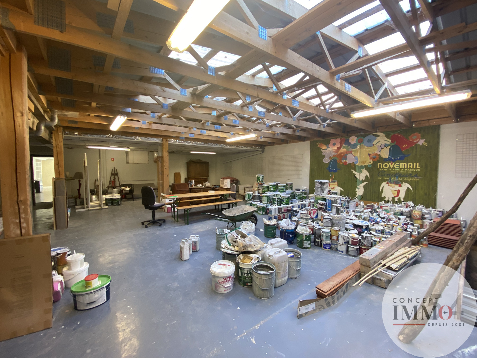 Sous-sol comprenant un vestiaire de 19 m², WC, ainsi que trois pièces de stockage totalisant 254 m², offrant un vaste potentiel pour du stockage, des archives ou une zone technique.