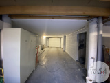 Garage arrière de 181 m², accessible depuis une rue latérale par une porte sectionnelle électrique.