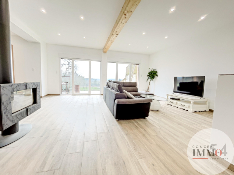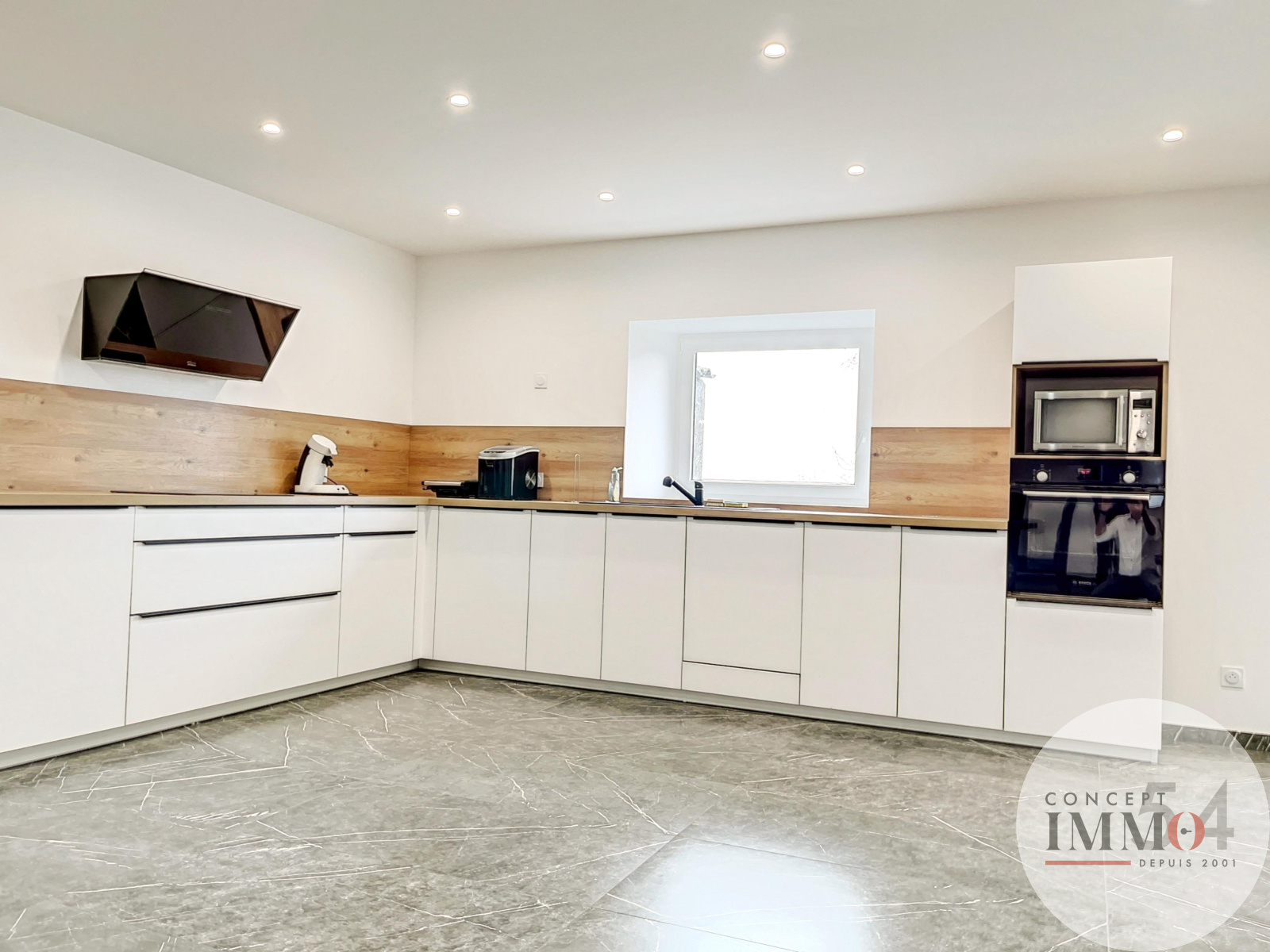 Superbe maison de village entièrement réhabilitée en 2022, d'une surface actuelle de 130 m² hab + grenier aménageable de 130 m² env. Actuellement le RDC est composé d'une entrée, superbe espace de vie avec cuisine US d'une surface de 94 m², 1 suite parentale avec salle d'eau privative, wc, grand garage/atelier, cave, terrasse de 52 m² + jardin. A l'étage, grenier aménageable avec possibilité de mezzanine + 2 ou 3 chambres supplémentaires +SDB et wc. Plans annexés aux photos. Chauffage électrique. Important: La façade avant va être réalisée prochainement à la charge du propriétaire. Très belles prestations PRIX: 230 000 € (Honoraires à la charge du Vendeur) Les informations sur les risques auxquels ce bien est exposé sont disponibles sur le site Géorisques: www.georisques.gouv.fr