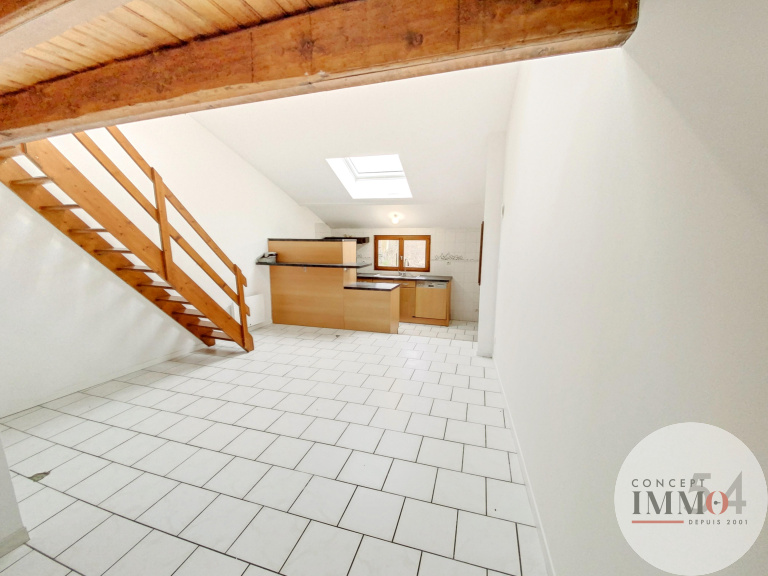 - A l'étage: cuisine ouverte sur salon/séjour avec accés terrasse de 15 m² sans vis à vis, mezzanine, une chambre, un bureau, salle de bains, WC.