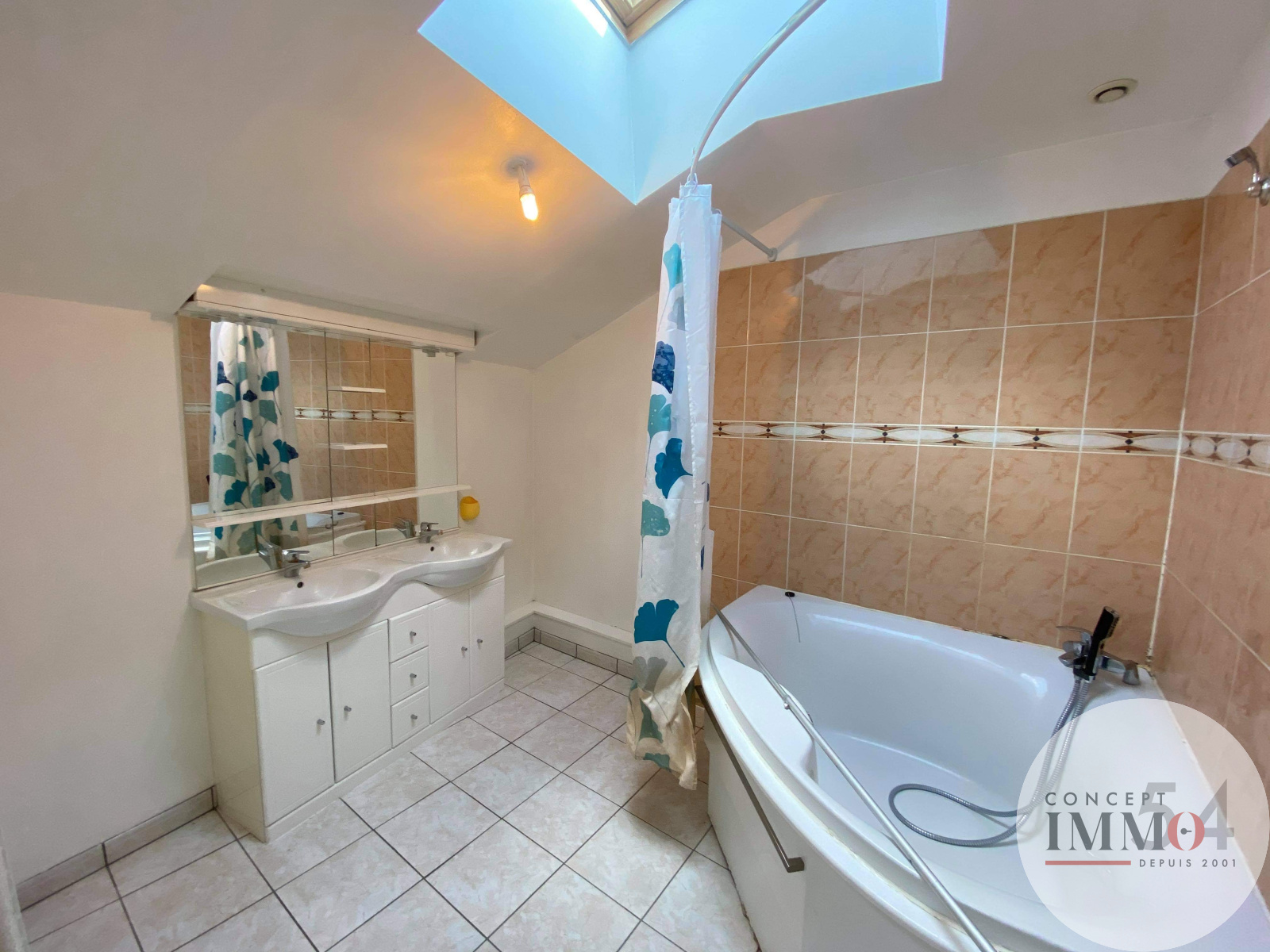 Maison de village entièrement réhabilitée en 2007, type F5, 115 m² habitables, comprenant salon-séjour avec cuisine équipée US, SDB, 2 wc, 3 chambres, espace bureau, buanderie, garage, atelier et Terrasse.