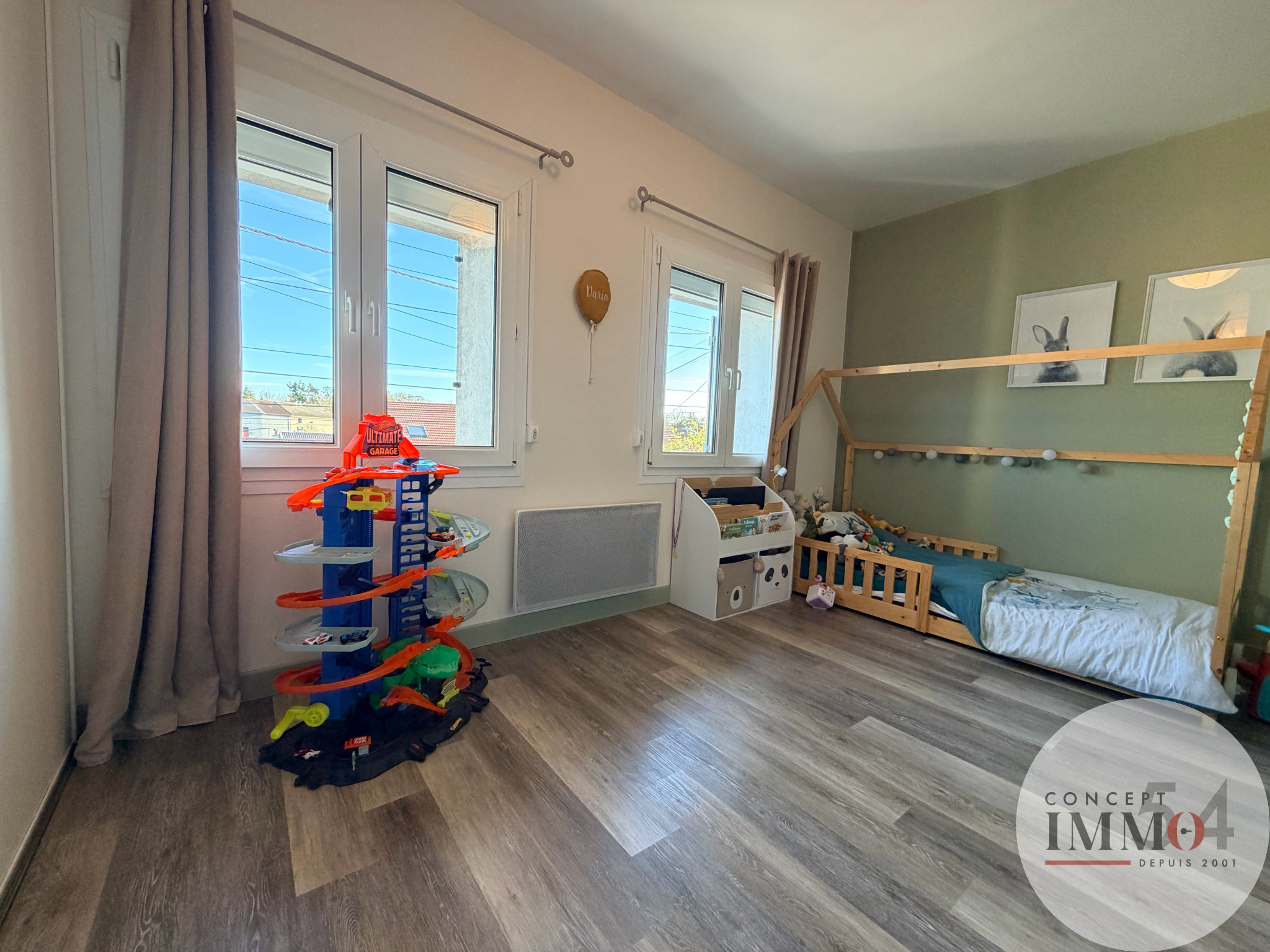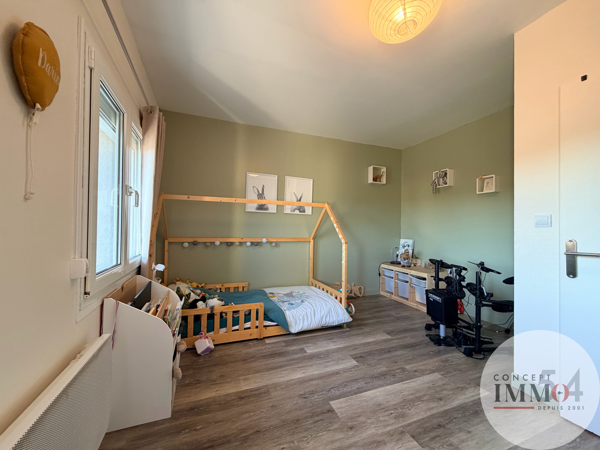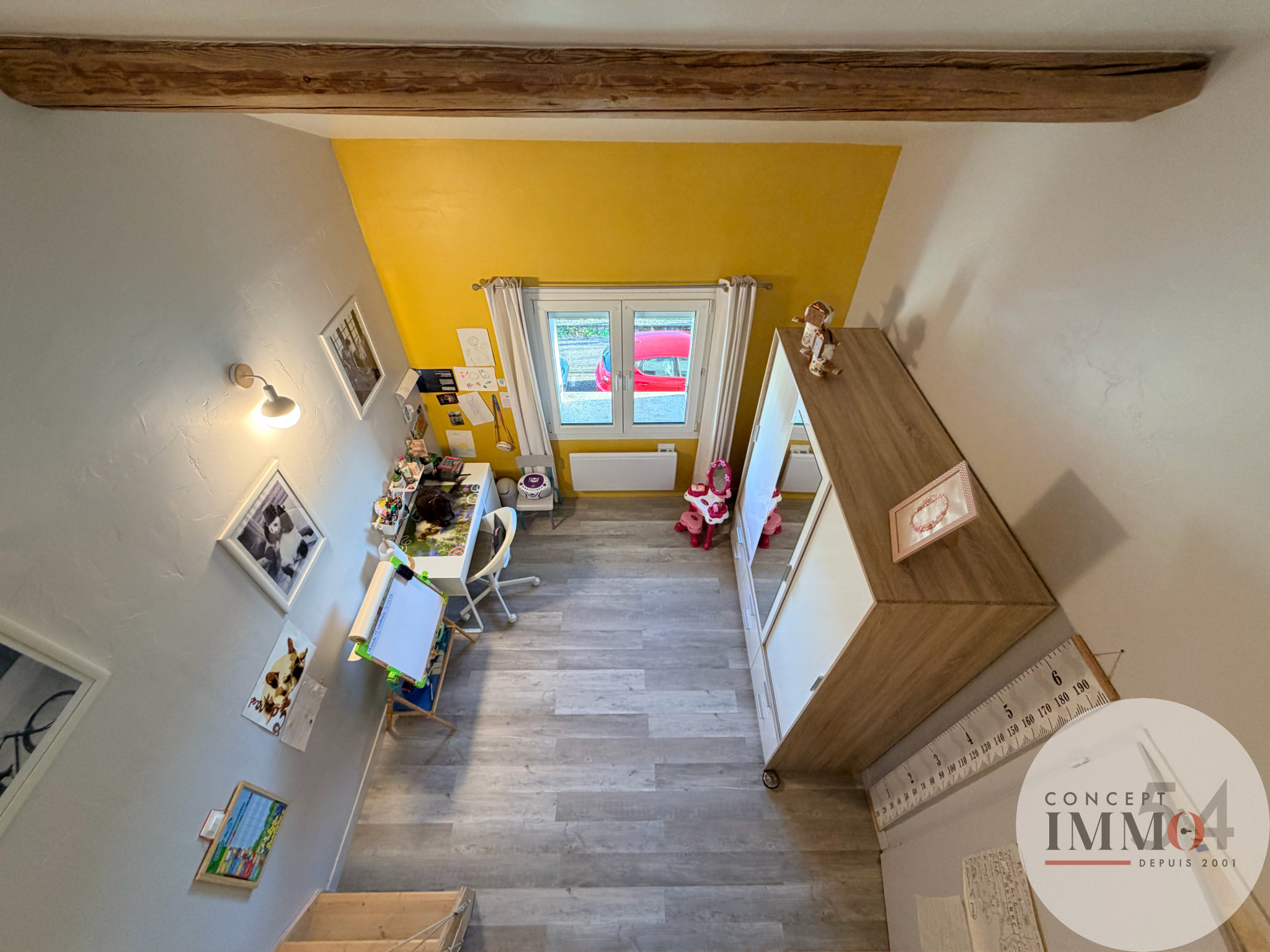 À l’étage, un dégagement mène à 4 belles chambres, dont 3 disposent de placards intégrés. La 4ème bénéficie d’une grande mezzanine, offrant un espace supplémentaire idéal pour un bureau ou une salle de jeux. Un grenier est également accessible au second niveau.