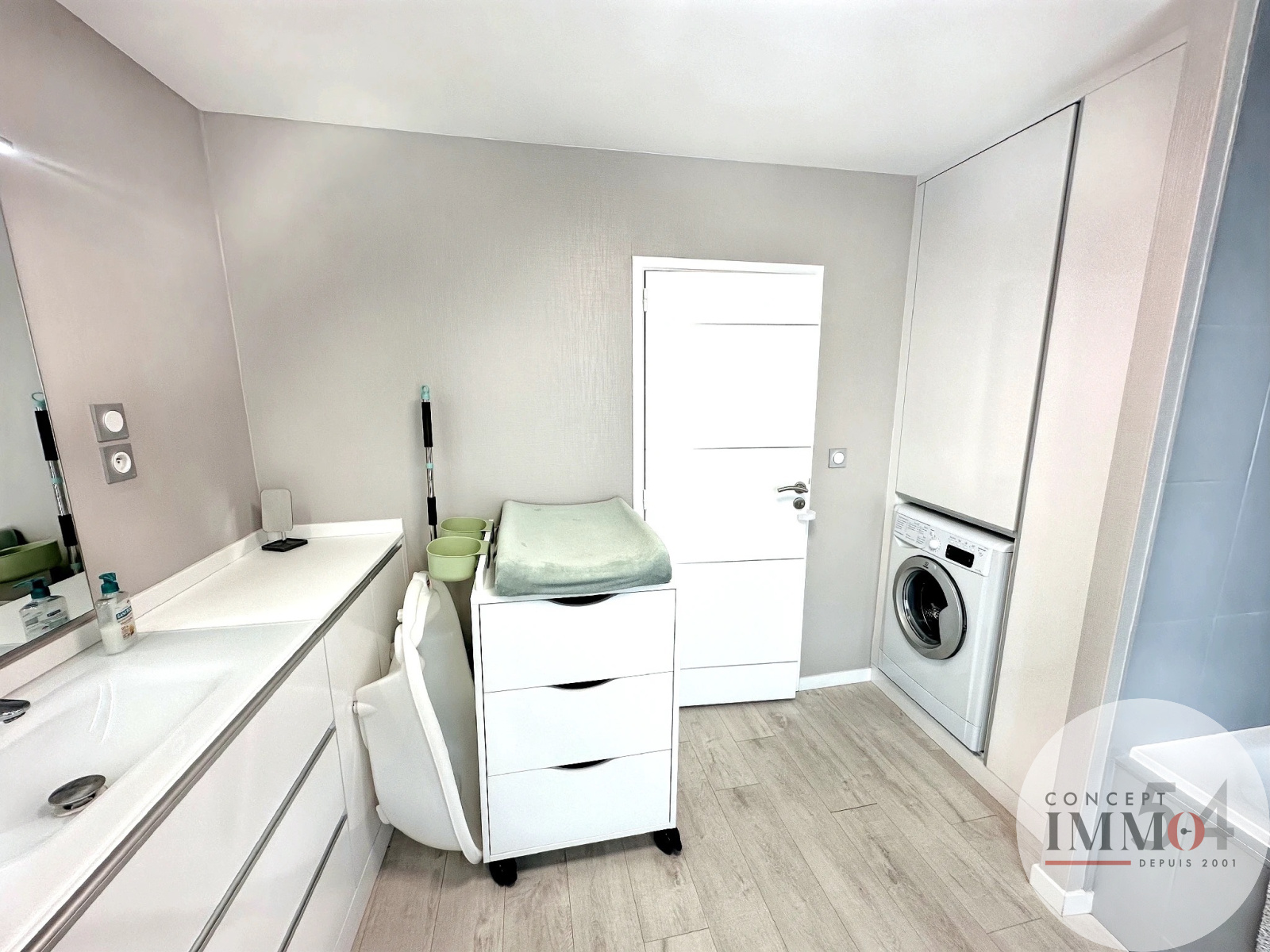 Rez-de-chaussée: une belle pièce de vie lumineuse avec cuisine équipée ouverte, une salle de bain avec baignoire et coin buanderie, WC séparé.
