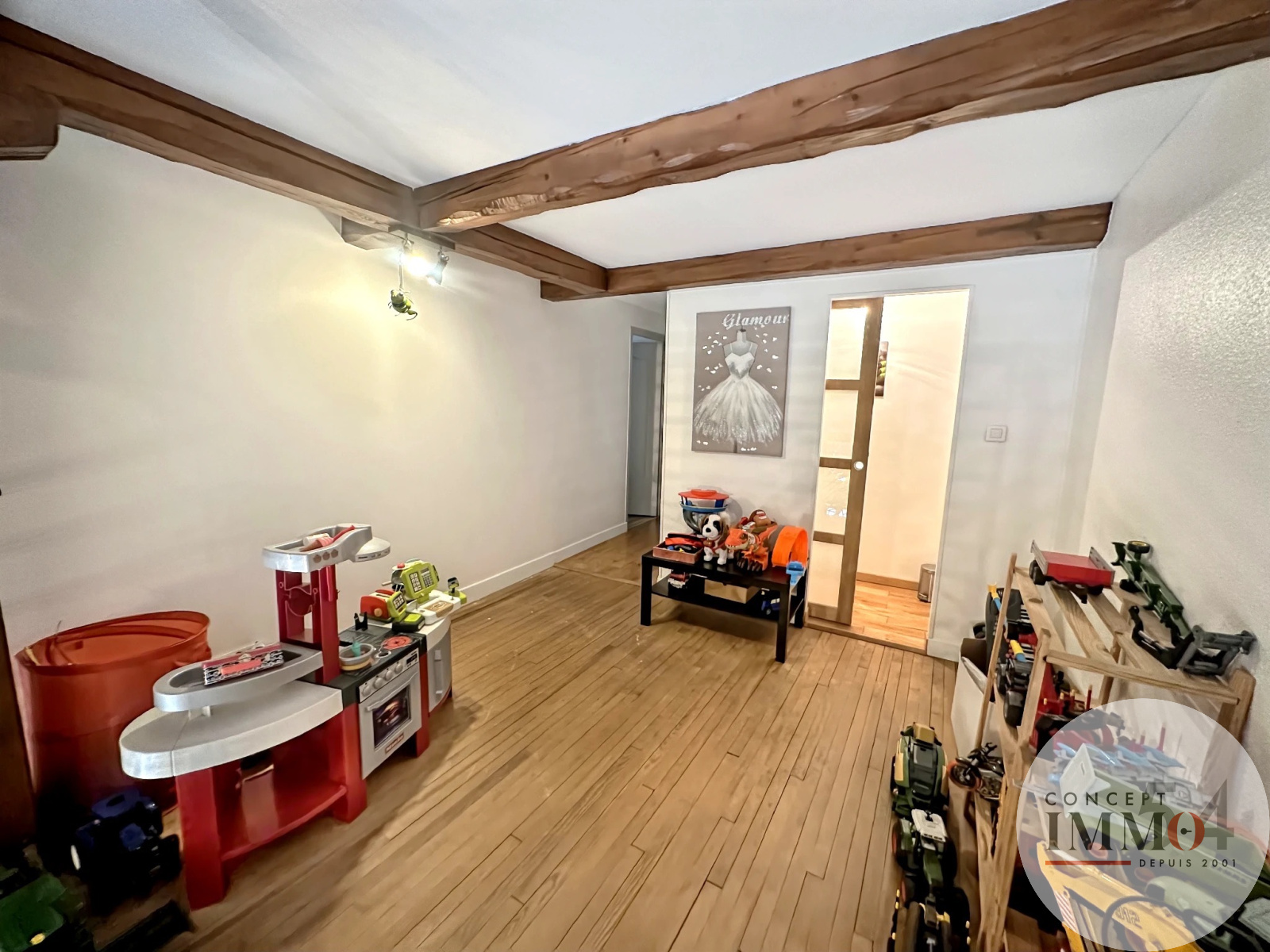 Combles aménagés pour espace de rangement ou espace de jeux pour enfants.